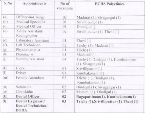 Jan 23, 2020   |   ECHS Recruitment, Tamil Nadu Jobs, Clerk Jobs, Technician Jobs, Assistant Jobs,