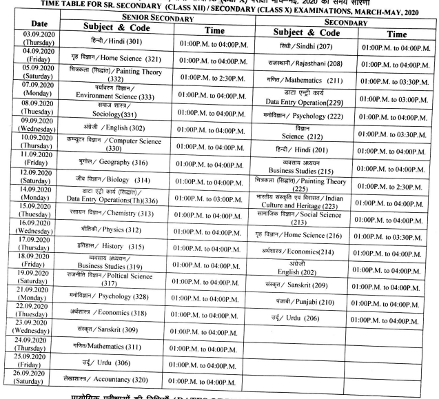 - RSOS is going to conduct the examination from 03.09.2020 and RSOS 12th Time Table/ RSOS 10th Time Table is given below