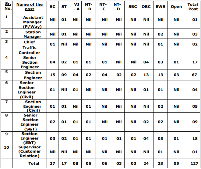- As per the notification, overall 127 vacancies are allotted for this recruitment. Post wise vacancy details are given below.