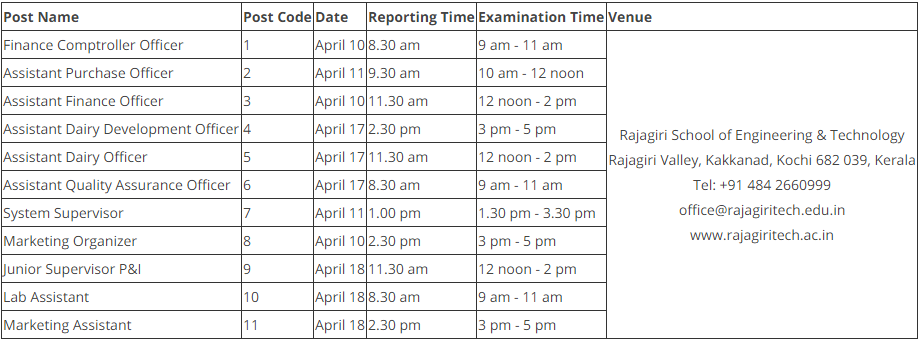 Exam Schedule for MILMA Admit Card/ MILMA Hall Ticket 2021