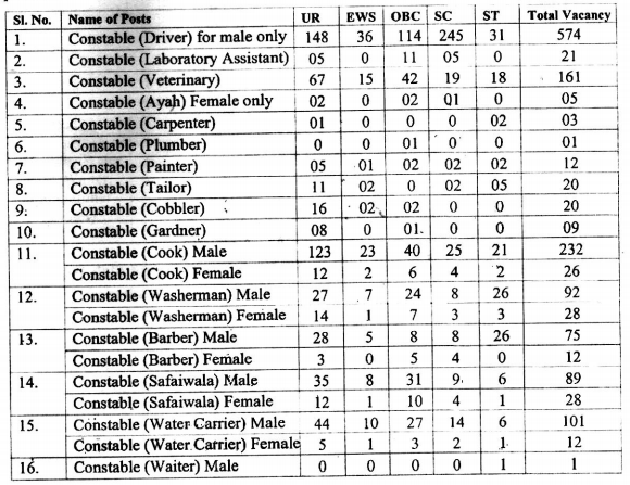 - Constable (Lab Assistant, Veterinary, Ayah, Carpenter, Plumber & Painter): 18 to 25 years.