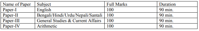- WBPSC will conduct the exam for 400 marks and exam scheme is given below