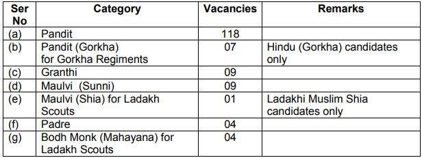 Junior Commissioned Officer (Religious Teacher) Posts |